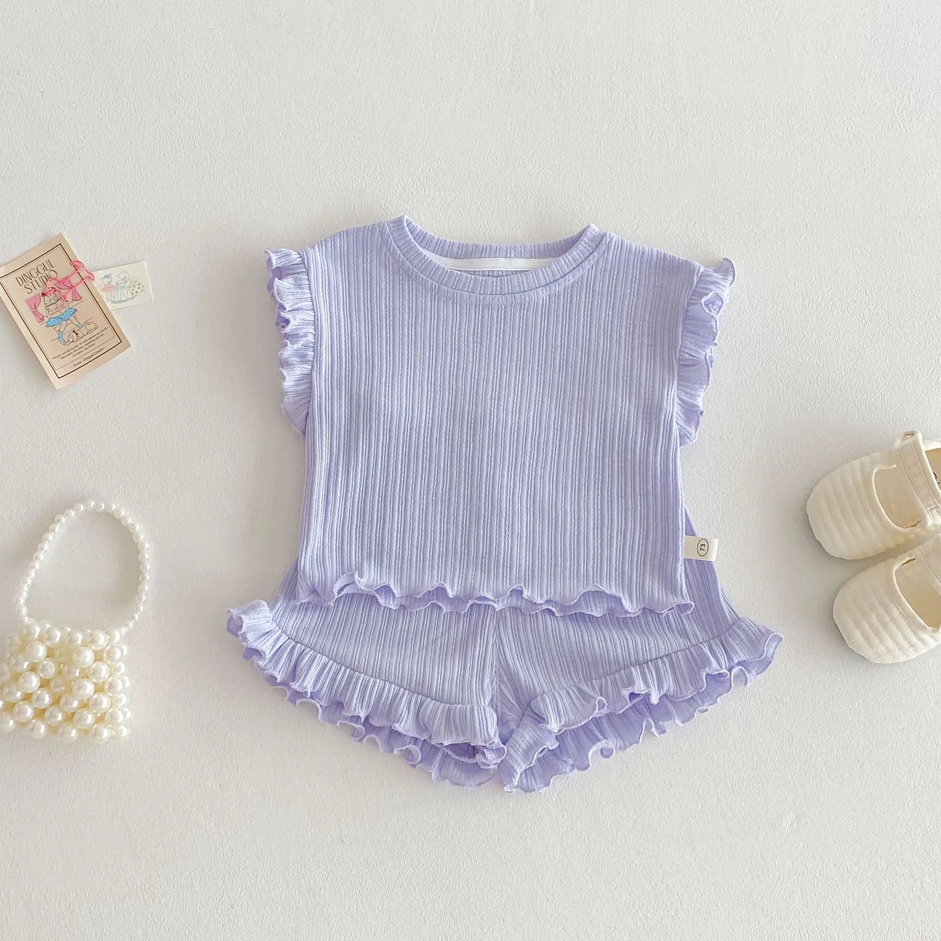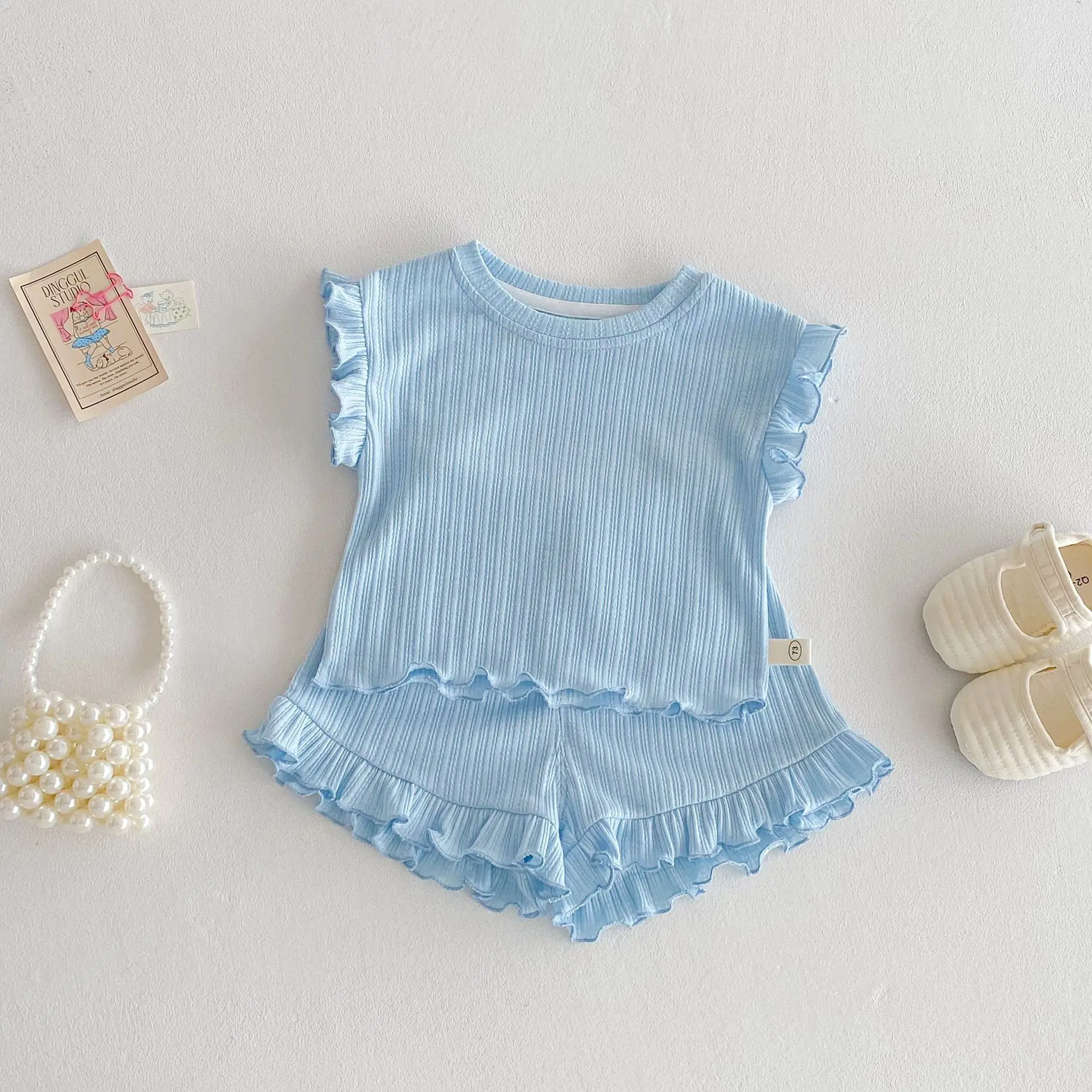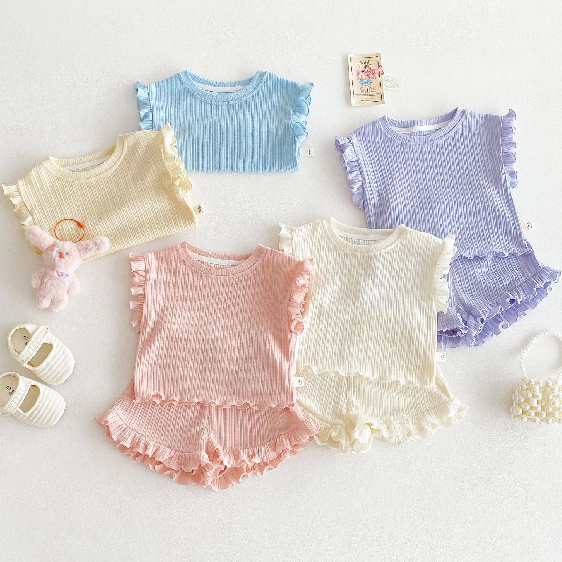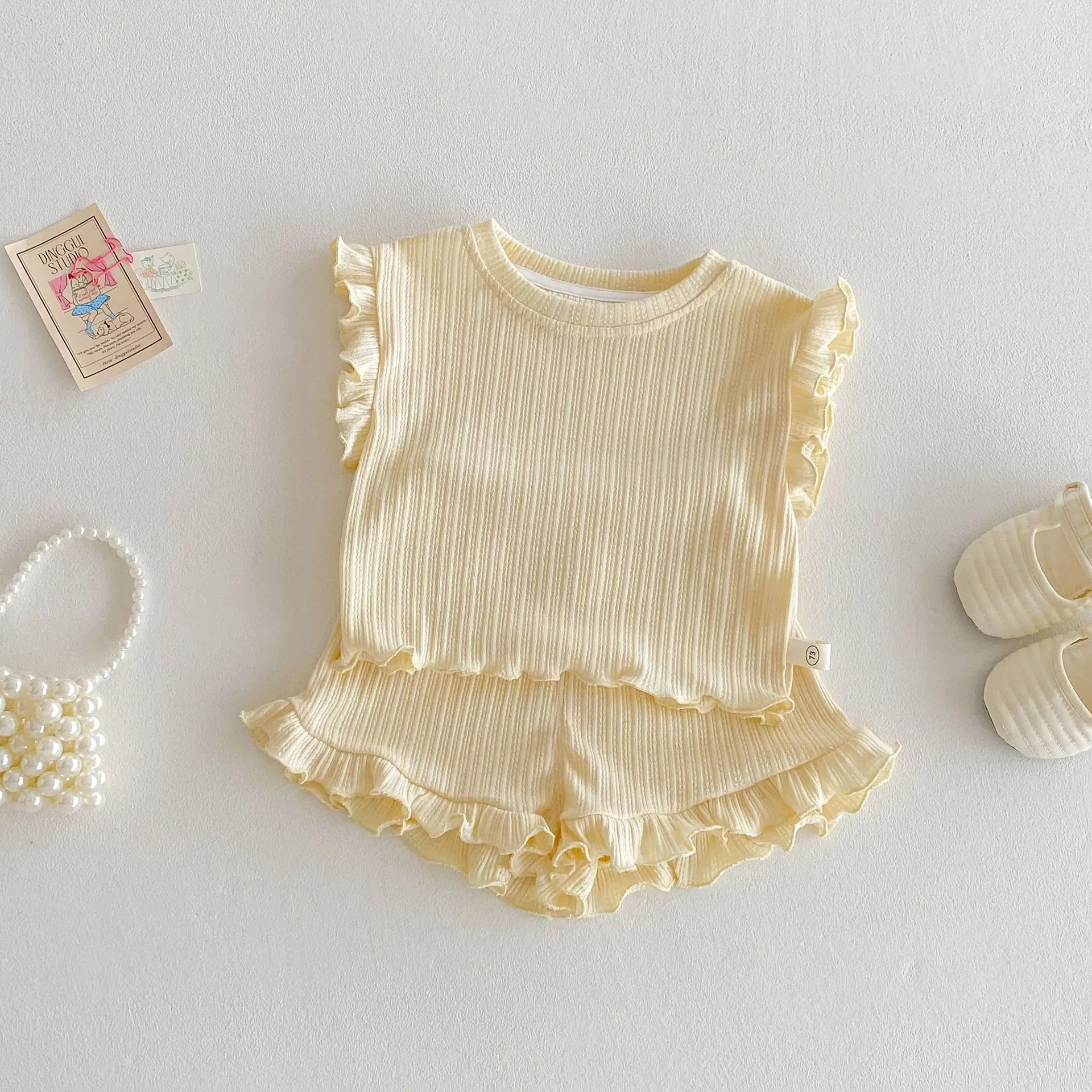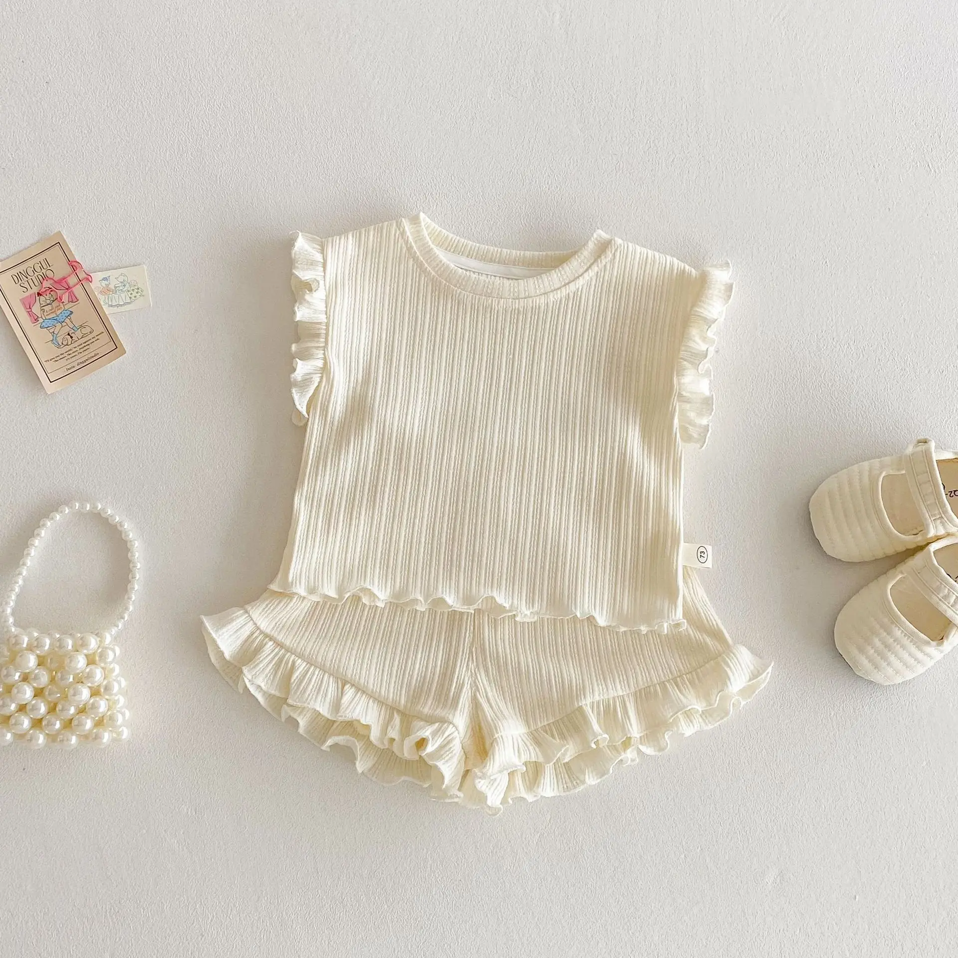 يشتمل على قميص علوي مكشكش بدون أكمام وشورت على الطراز الكوري، مما يوفر ملاءمة سهلة للنزهات اليومية أو المناسبات غير الرسمية.