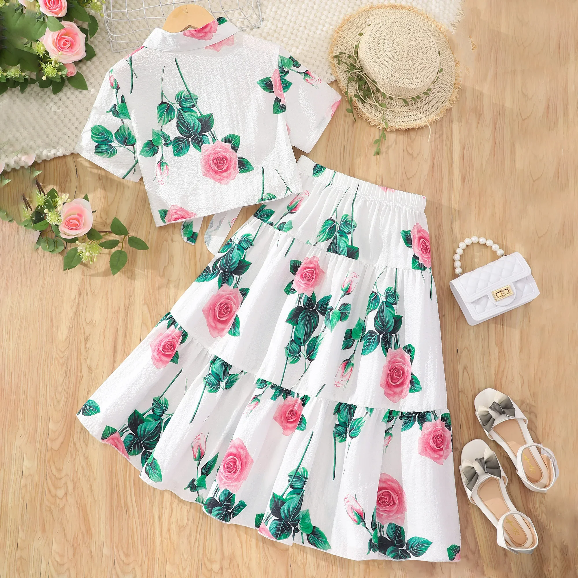 طقم صيفي بناتي يتكون من قميص أبيض بأكمام قصيرة مريح وخفيف مع تنورة واسعة مطبّعة بالورود الزهرية تمنحها حرية الحركة وأناقة فريدة. تصميمه البوهيمي يضيف لمسة عصرية تناسب مختلف المناسبات سواء للطلعات اليومية أو المناسبات العائلية.