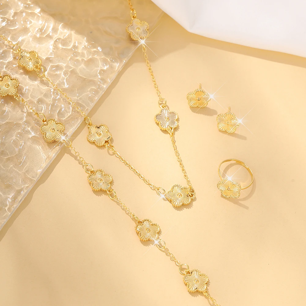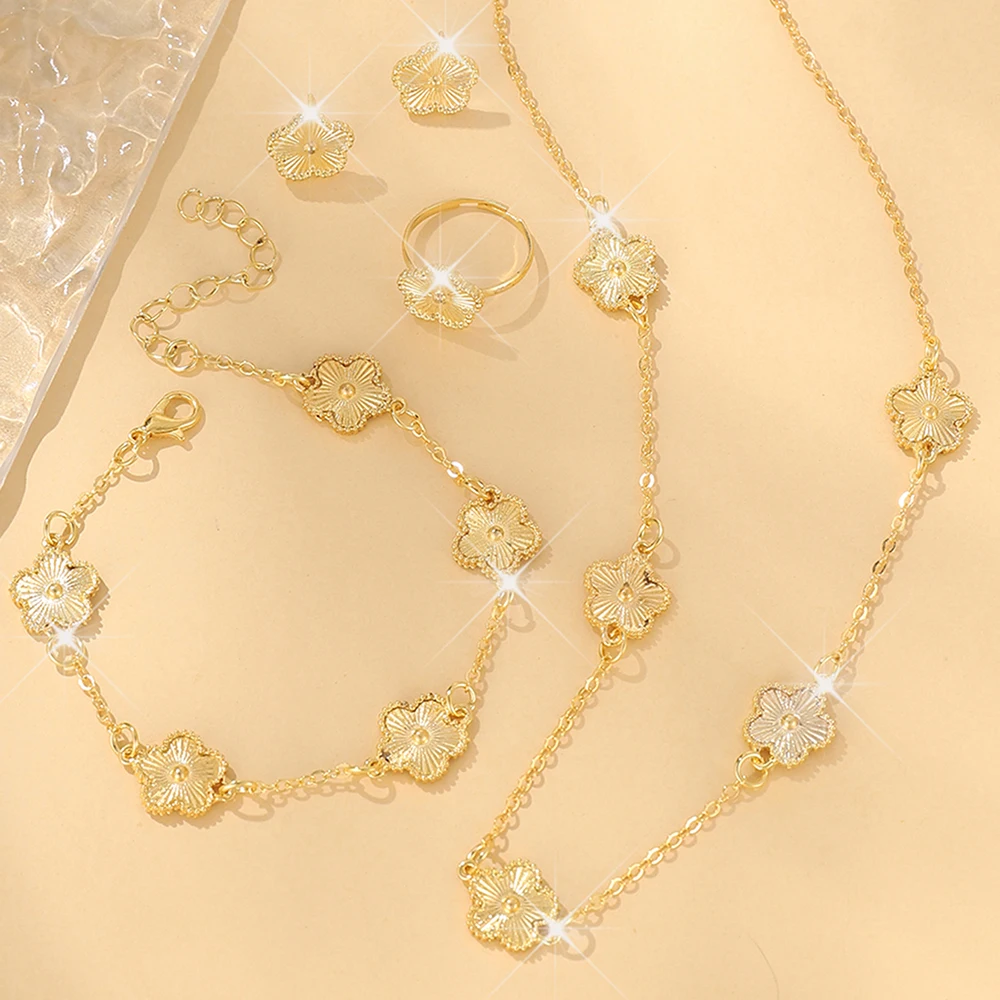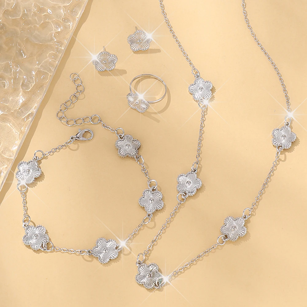 في قلب الأناقة، تتفتح حكاية ساحرة، حيث يلتقي الإبداع بالجمال. هذا الطقم ليس مجرد مجوهرات، بل هو تحفة فنية، نسجت بخيوط من الفخامة والرقي. تخيلوا زهرة متلألئة، تنعكس عليها أشعة الضوء، فتزداد تألقاً وبريقاً. تلك هي الروح التي ألهمت تصميم هذه المجموعة الفريدة. كل قطعة، من القلادة الأنيقة إلى السوار الرقيق والأقراط الساحرة، تحمل بصمة الحرفية اليدوية المتقنة. تفاصيل دقيقة، تعكس ذوقاً رفيعاً وشغفاً بالجمال. إنها ليست مجرد زينة، بل هي تعبير عن شخصية متميزة، وإضافة لا تقدر بثمن إلى مجموعة المجوهرات الخاصة بك. ارتداء هذا الطقم هو تجربة حسية، تلامس الروح وتعزز الثقة. يضفي لمسة من السحر والجاذبية على أي إطلالة، ويجعل كل لحظة ذكرى لا تنسى. تخيلوا الإعجاب في عيون الآخرين، وهم يرون هذا التألق الفريد. هذا الطقم، هو الهدية المثالية للمرأة التي تقدر الجمال، وتستحق الأفضل. هو عربون تقدير، يعبر عن الحب والاهتمام بطريقة لا تُنسى. هذه المجموعة هي جوهر الفخامة، وقيمتها تتجاوز حدود الزمن