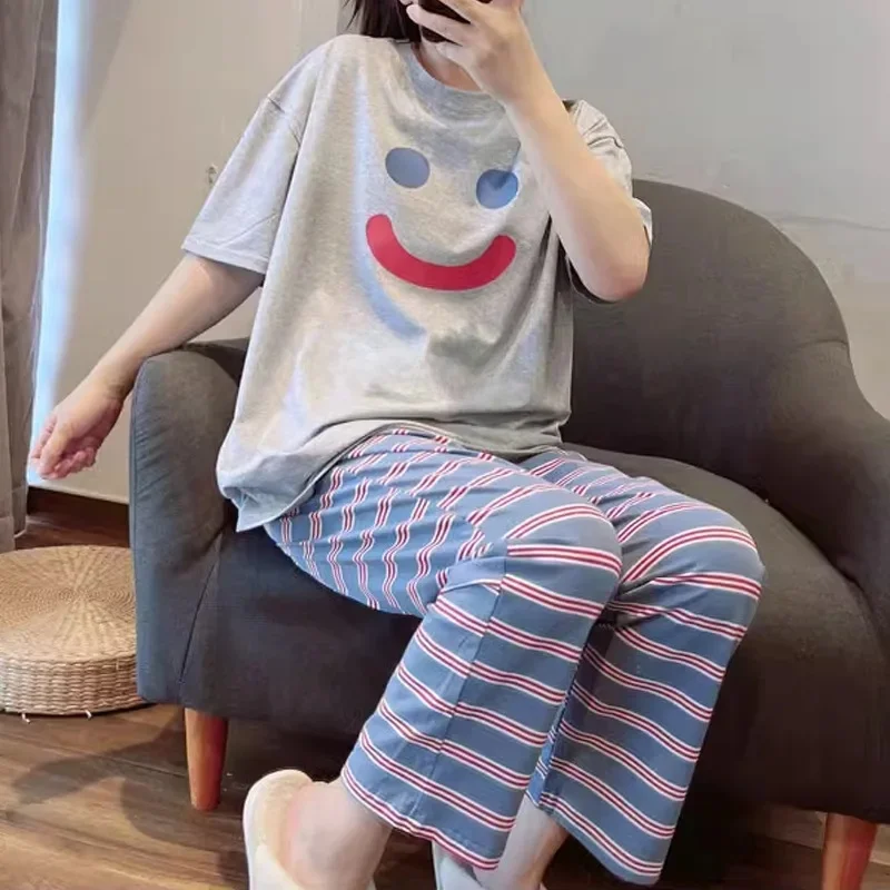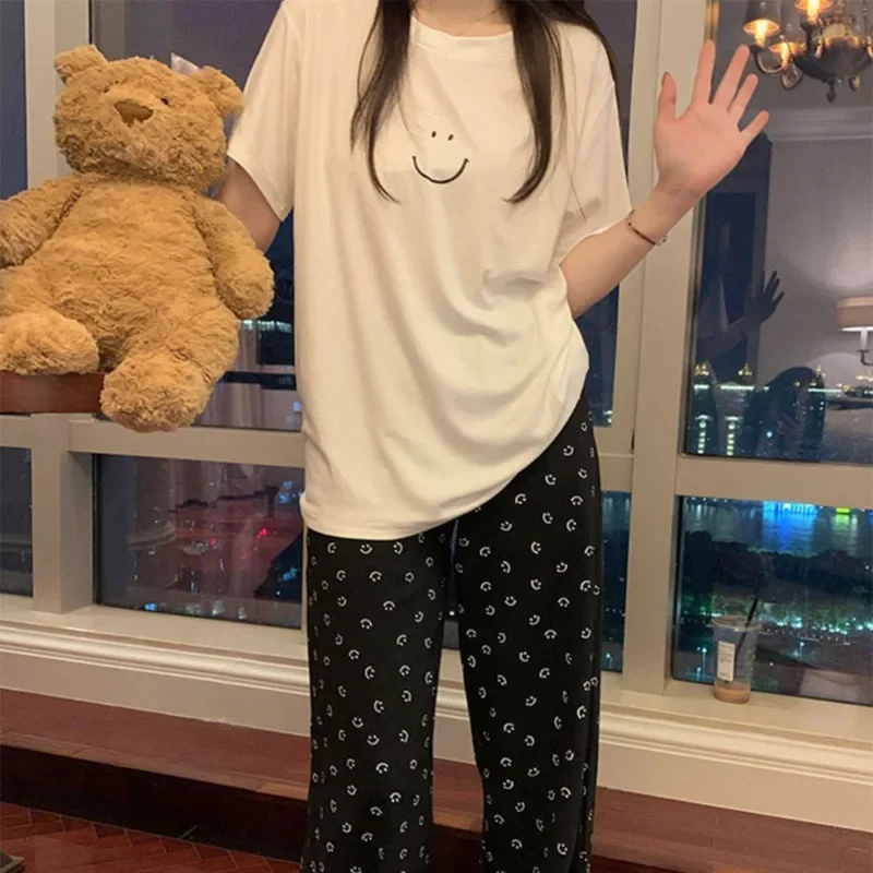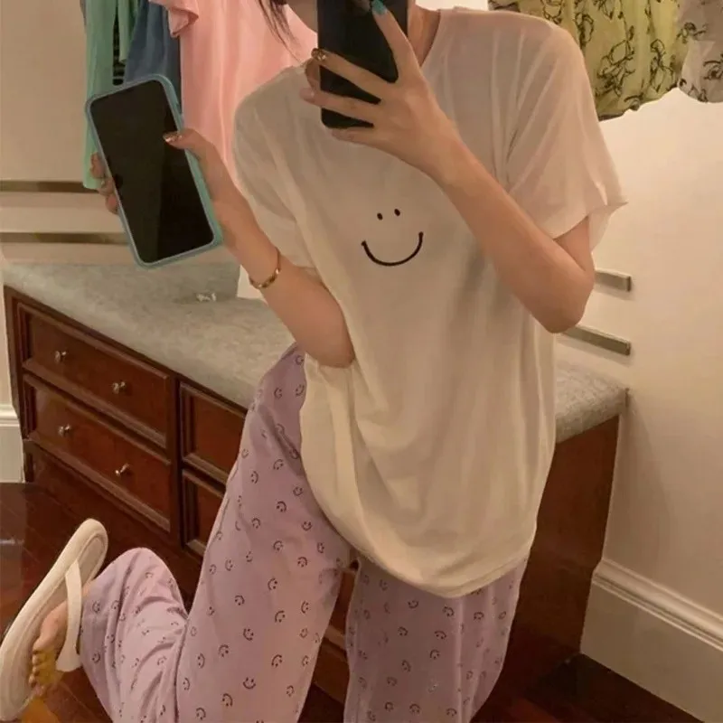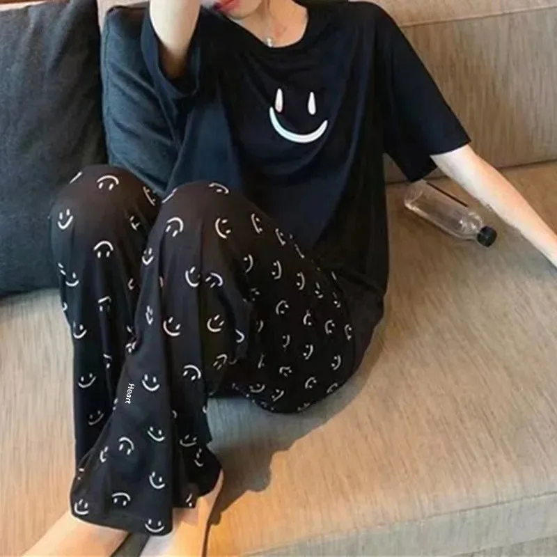 طقم ملابس نوم حرير صيفي قطعتين