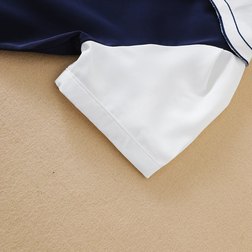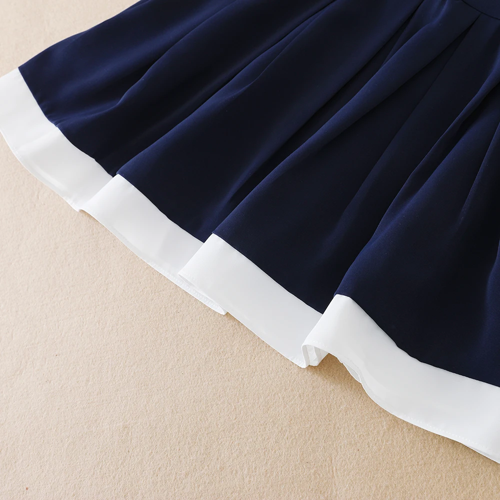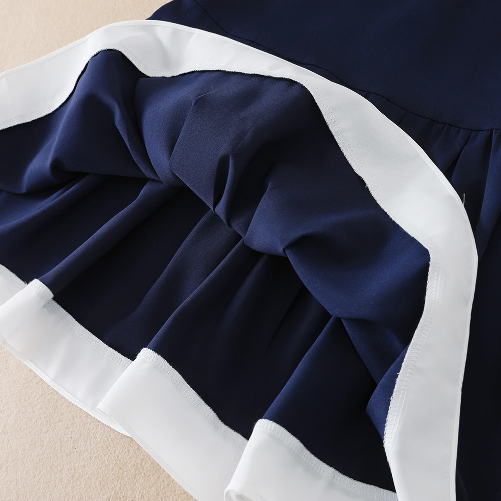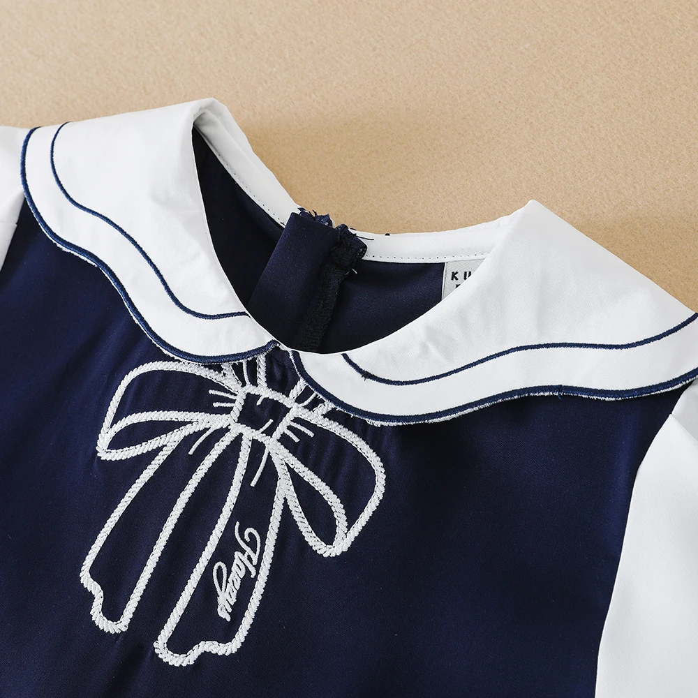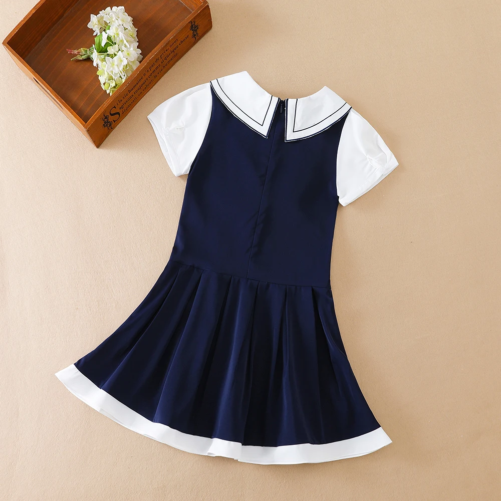 طفشتي تدورين لبس رسمي ومريح لبنتك للمدرسة؟ الفستان هذا بيحل لك المشكلة. هذا الفستان تصميم عملي وأنيق. خامة مريحة تتحمل لعب البنات وحركتهم طول اليوم. لونه كحلي رسمي، وياقته البيضا تزيد أناقته. فيه فيونكة تعطيه شكل حلو ومرتب. أكمامه القصيرة مناسبة للجو. تقدرين تلبسينه بنتك للمدرسة بكل سهولة. بس اختاري المقاس المناسب وخليه عليها. بيصير لبسها جاهز بسرعة. الفستان يوفر لك وقت وجهد. بدل ما تدورين وتنسقين، هو قطعة وحدة تكفي وتوفي. بنتك بتصير كشخة ومرتبة بدون تعب. الفستان هذا هو الحل الأمثل للبس المدرسة اليومي