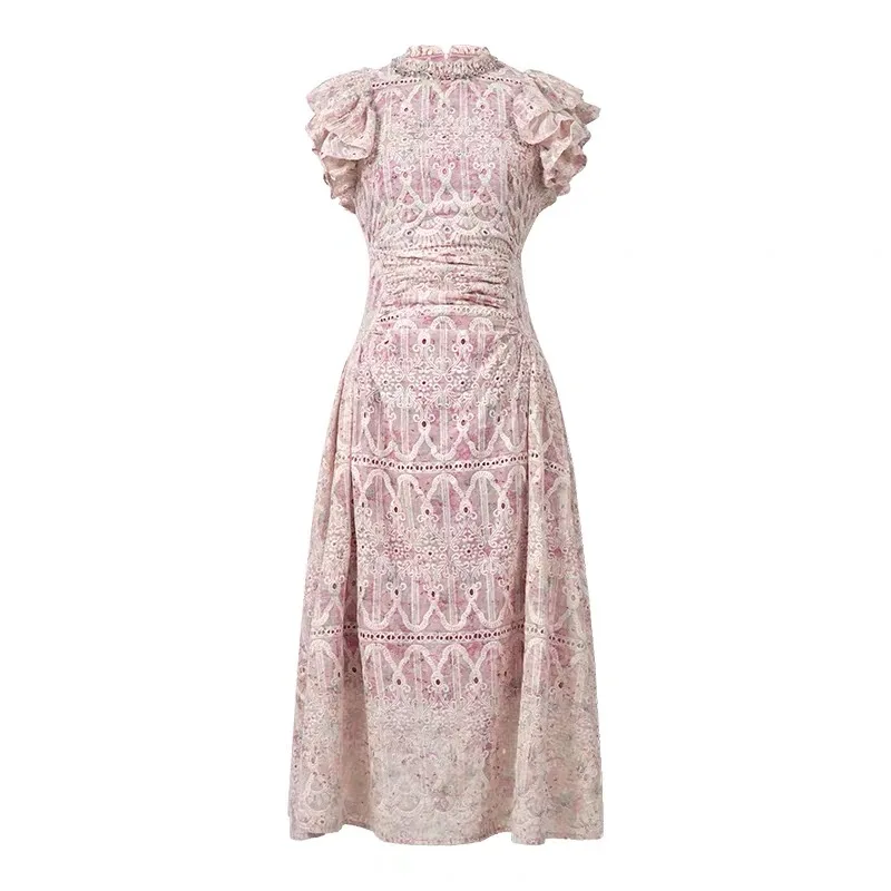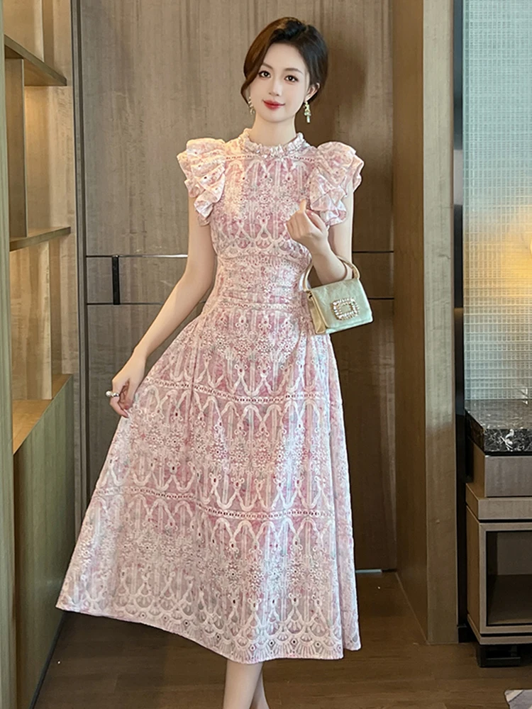 فستان ميدي مُطرّز زهري فاخر