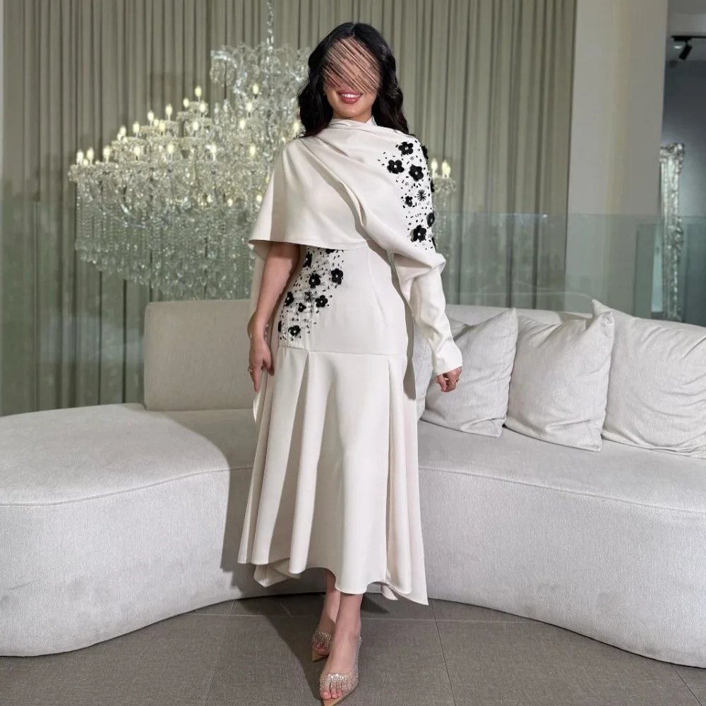 • تصميم ياقة عالية وذيل السمكة يمنحان حضورا ملكيا دون مبالغة.