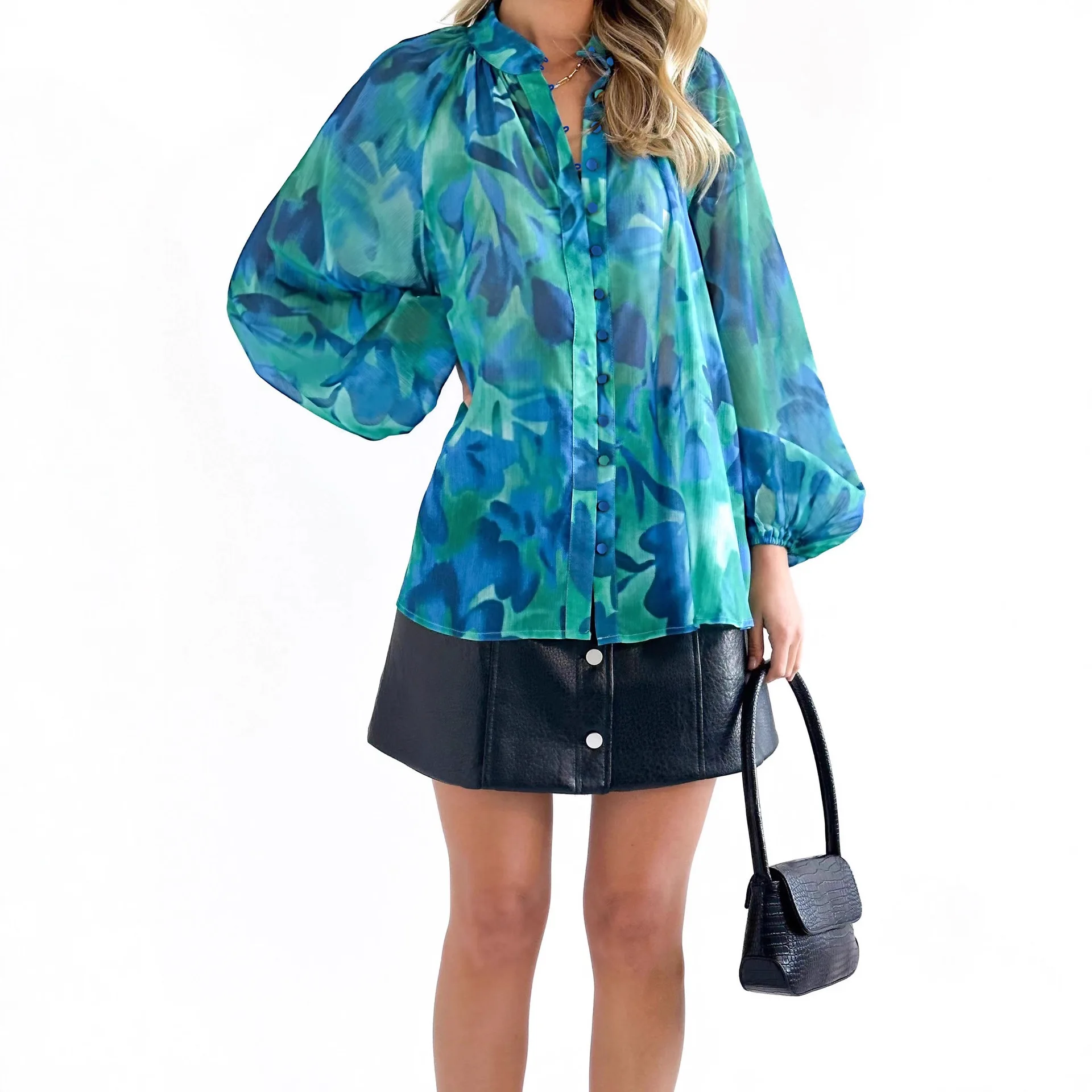 تتفتح الزهور على هذا القميص لتضفي عليكِ سحراً لا يقاوم. تصميم الأزهار الأنيق يجعله قطعة أساسية في خزانة ملابسك، سواء كنتِ تستعدين ليوم عمل أو لقضاء أمسية ممتعة.