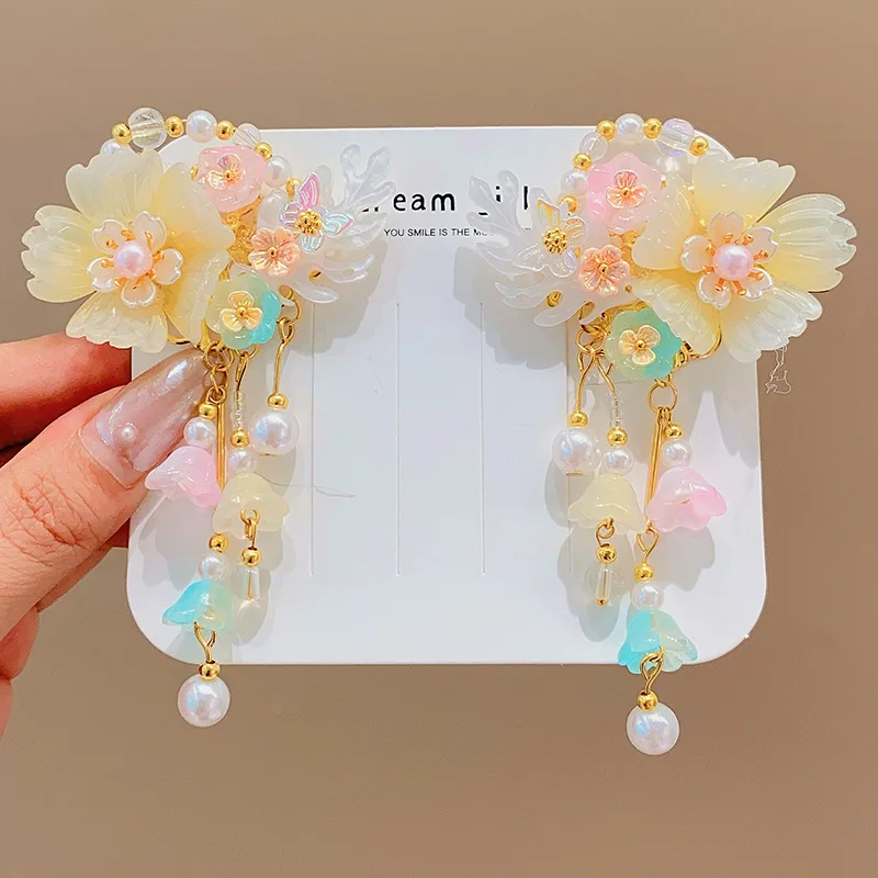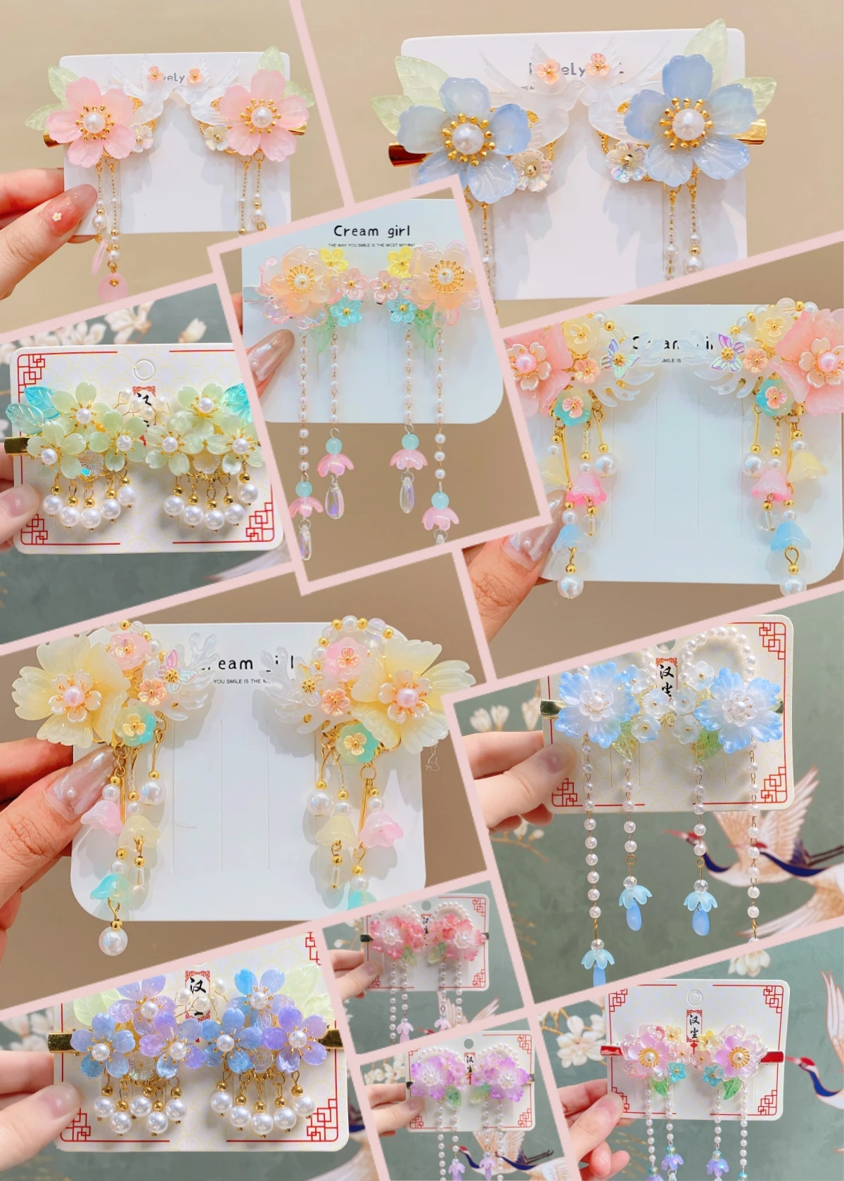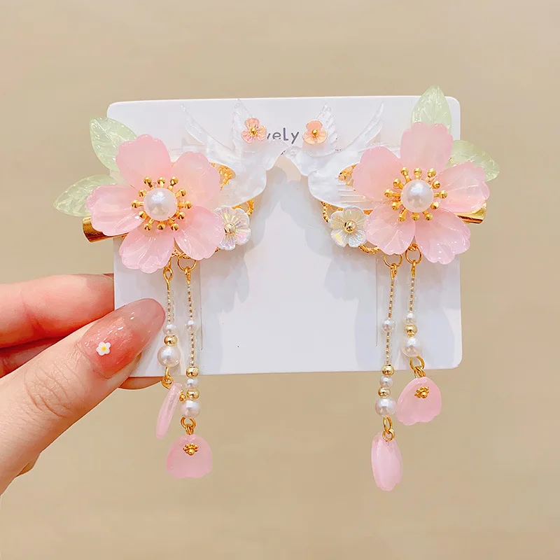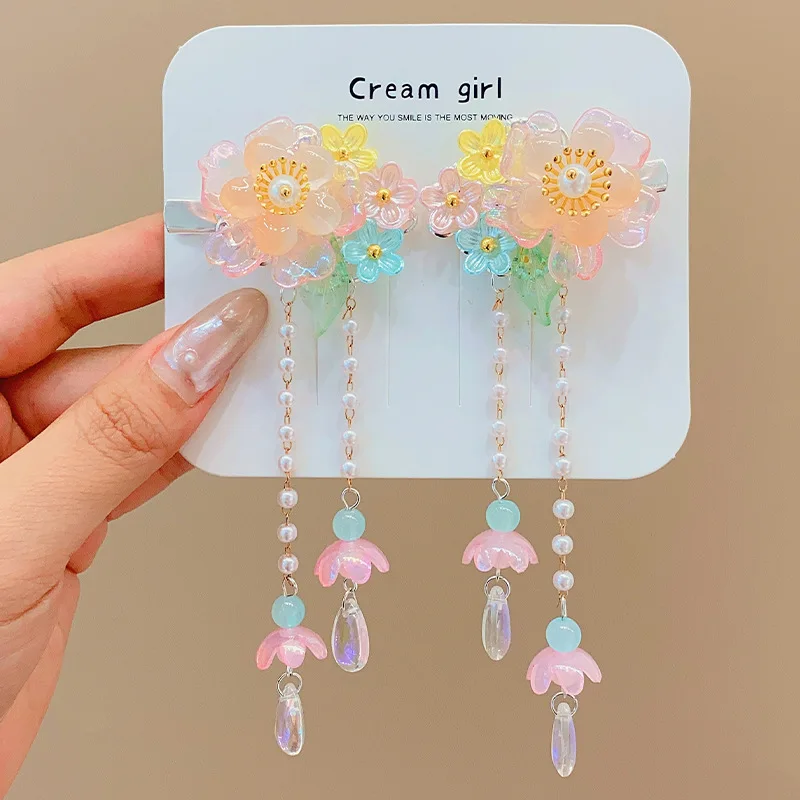 مشبك شعر بناتي لؤلؤ وشرابة قطعتين